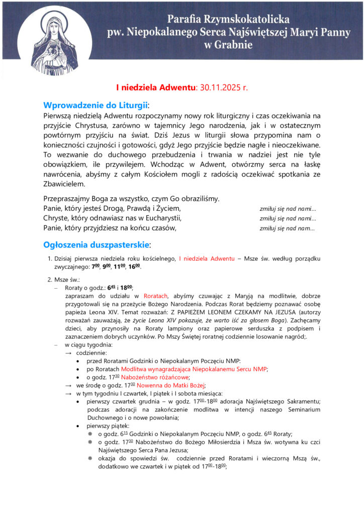 Parafia Rzymskokatolicka Niepokalanego Serca NMP w Grabnie